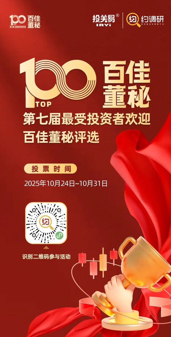 约调研“百佳董秘”评选正在进行中,请给你心目中的优秀董秘投上一票。